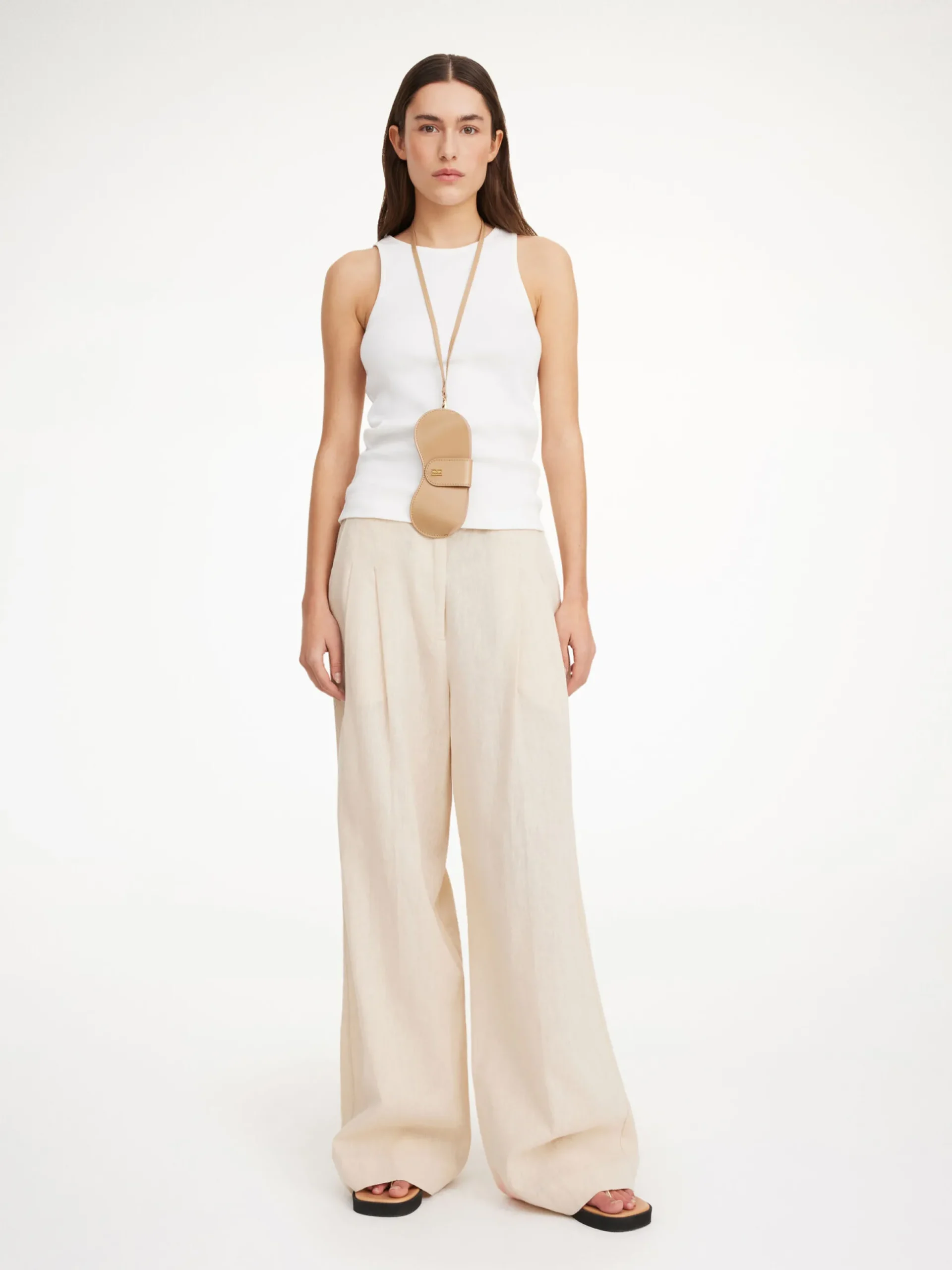Combining ease and elegance, the Cymbaria trousers are an everyday staple you will choose for seasons to come. The high-waisted silhouette features flared wide legs, pressed pleats, and belt loops. Tuck a silk shirt into yours for office hours.