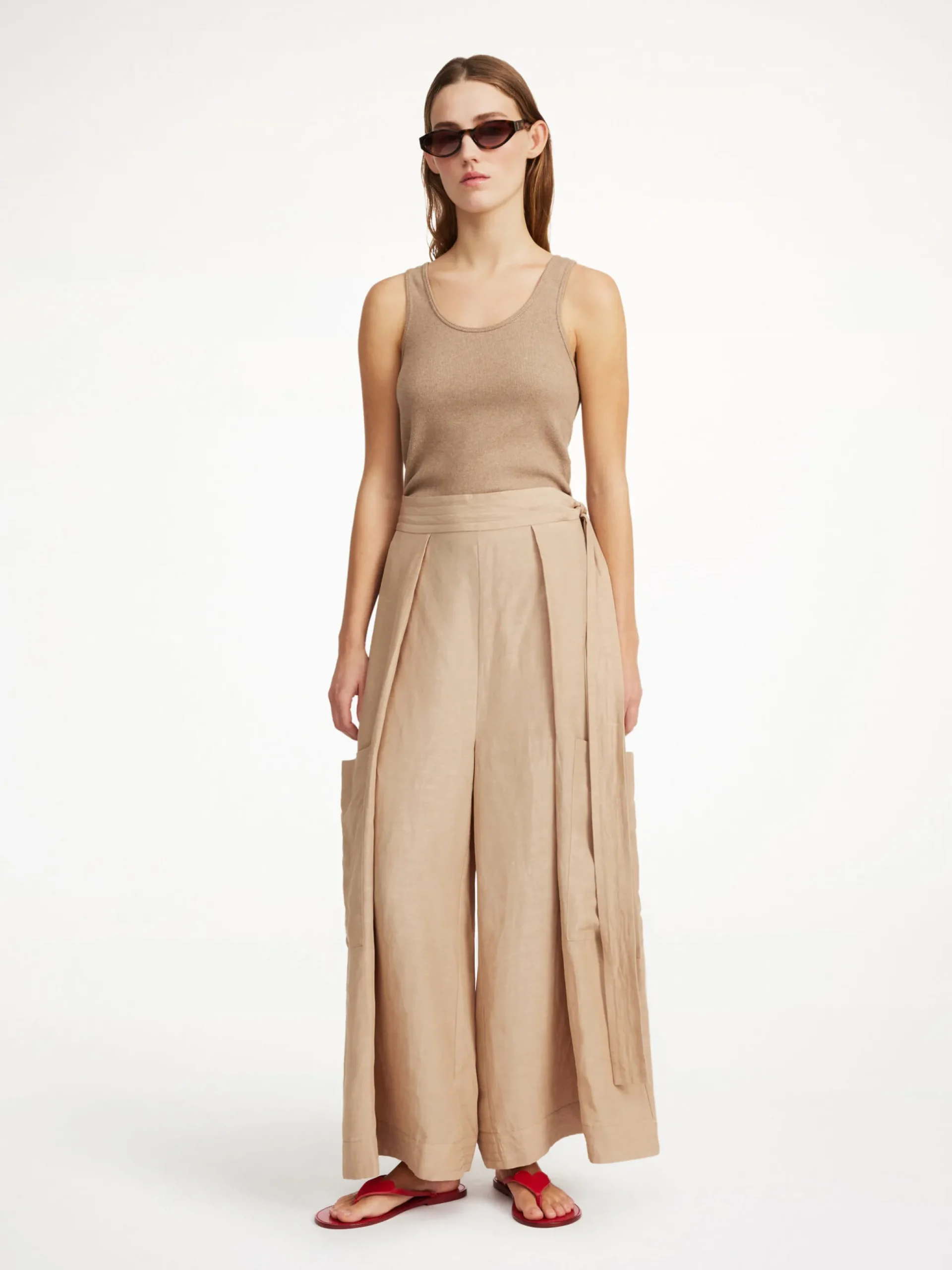 Cut in the season’s wide-leg silhouette, the Darlane trousers are made from a tactile blend of linen and cupro with a subtle textured finish. They’re detailed with large pockets on each side of the wide legs and bands to tie in the waist. Pair with the Dakote blouse for a coordinating set.