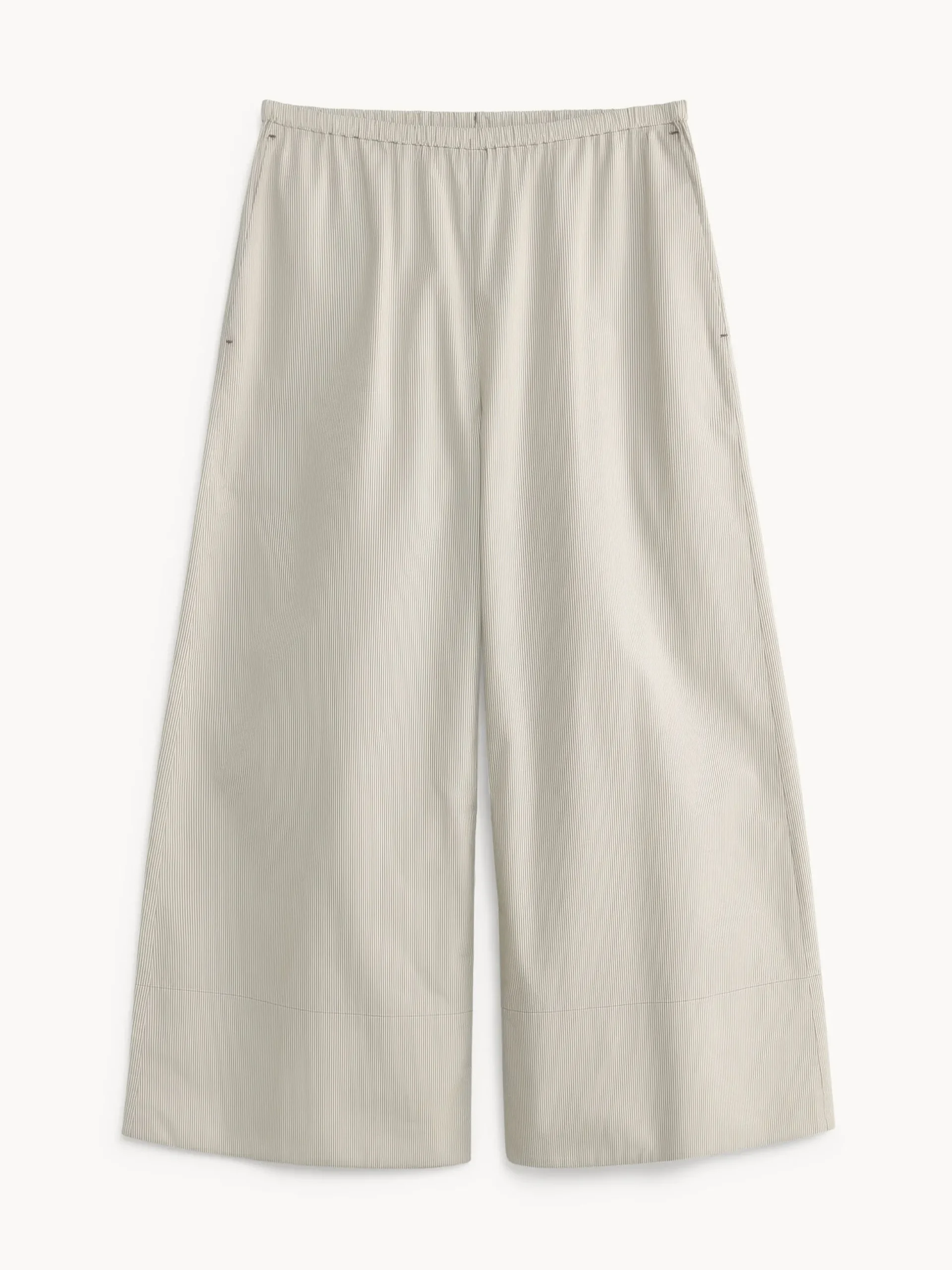 Cut in the season’s relaxed wide-leg silhouette, the Luisa trousers are made from a crisp organic cotton with a subtle stripe. The endlessly versatile design, which is completed with an elastic waist and side pockets, can be worn on weekdays, weekends and beyond.