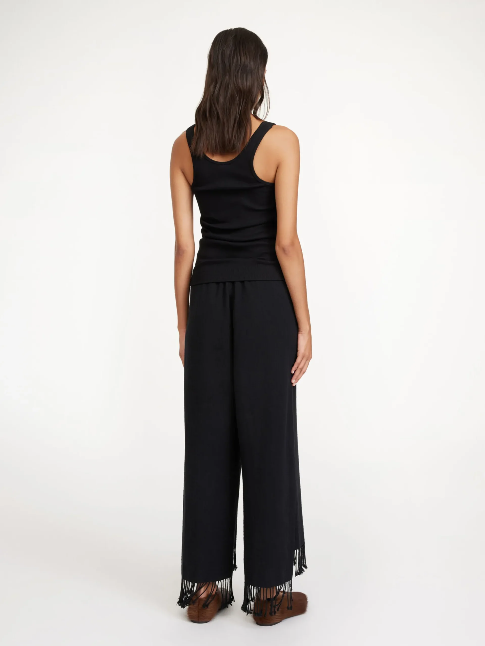 By Malene Birger Mirabellas trousers made from a lightweight cotton blend for elegant comfort. They have a loose, straight-leg silhouette and are finished with an elasticated waistband and a fringed hem. Wear them with the coordinated blouse as a day-to-day ensemble.